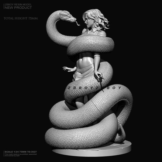 1/24 75mm Resin Model Kit Beautiful Girl Emma Wizard & Snake TD-3527 Unpainted