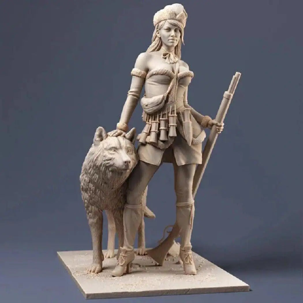 Introducing the stunning 1/24 70mm Resin Model Kit of a beautiful woman huntress with her loyal wolf companion. This unpainted masterpiece is a must-have addition to any collector's treasure trove.