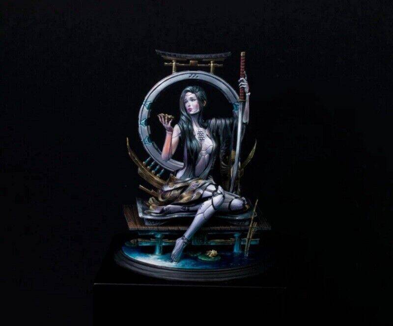 1/8 190mm 3D Print Cyberpunk Model Kit Beautiful Girl Woman Samurai Unpainted