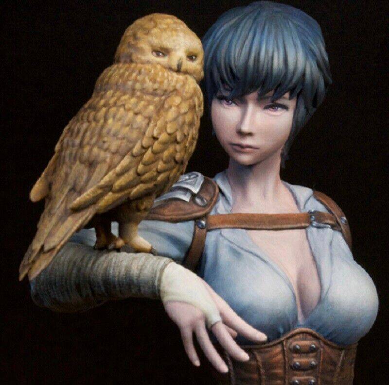 1/10 BUST Resin Model Kit Beautiful Girl Woman Hunter and Owl Unpainted